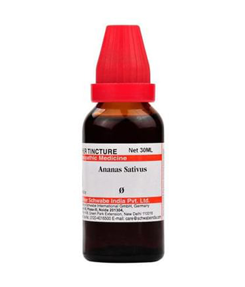 Dr. Willmar Schwabe India Ananas Sativus Mother Tincture is homeopathic medicine. It is mainly extracted from pineapple and mostly found in stem and juice. It is made by methods called maceration and percolation. The factors that help in delivering best quality are phytochemicals, bacterial counts, and filtering process. The parts used in manufacturing this medicine are leaves and roots.