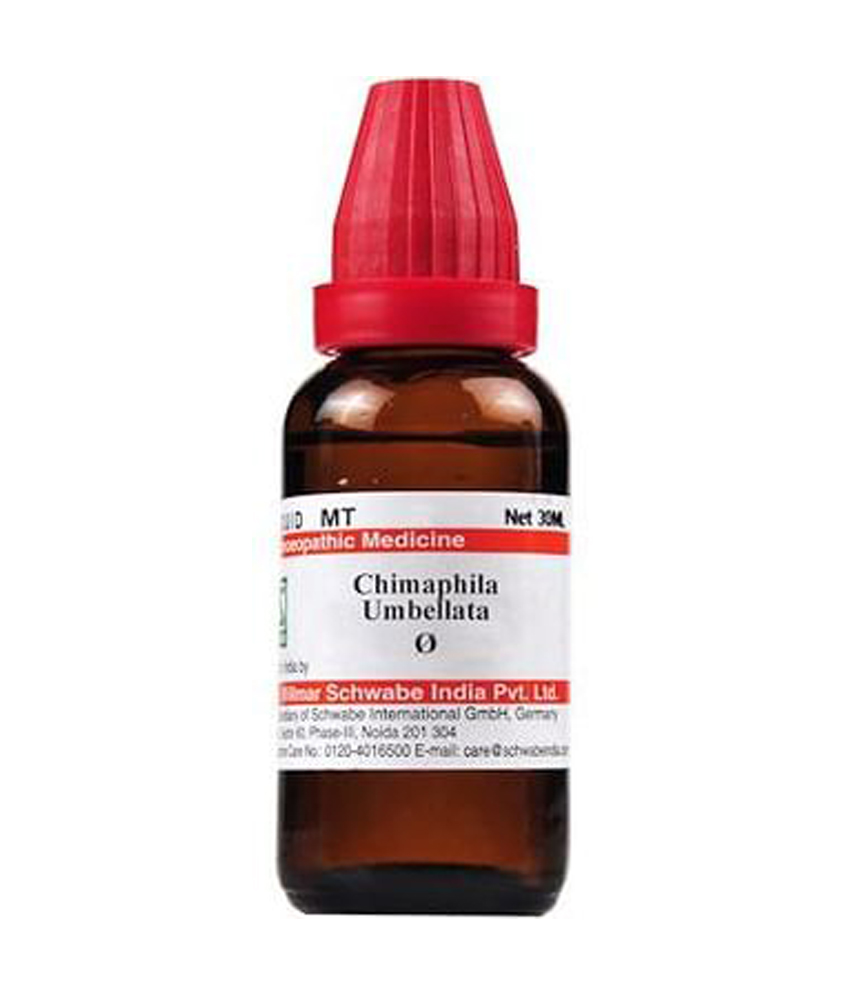 Dr Willmar Schwabe India Chimaphila Umbellata Mother Tincture is a multipurpose homeopathic health tonic which is primarily used for the treatment of urinary disorders such as excessive urge to urinate and painful urination. It has a potent effect on liver disorders and treats issues related to alcoholism. Females can use this dilution to get relief from pain in the vagina as well as pain caused due to tumours of the mammary gland.
